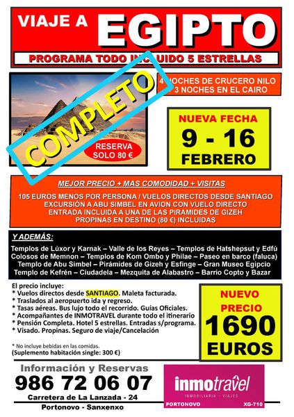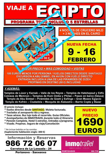 Viaja con Inmotravel... nuestros viajes en grupo lo incluyen TODO. Salimos en bus desde Portonovo y localidades del entorno, nos vamos al aeropuerto y volamos a nuestos destinos y, a partir de ahí... excursiones, entradas, visitas, guías, alojamientos, comidas, tasas... Te lo incluimos TODO. Y la mejor garantía, con personal de INMOTRAVEL de principio a fin.