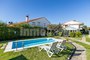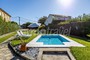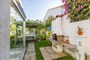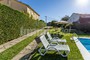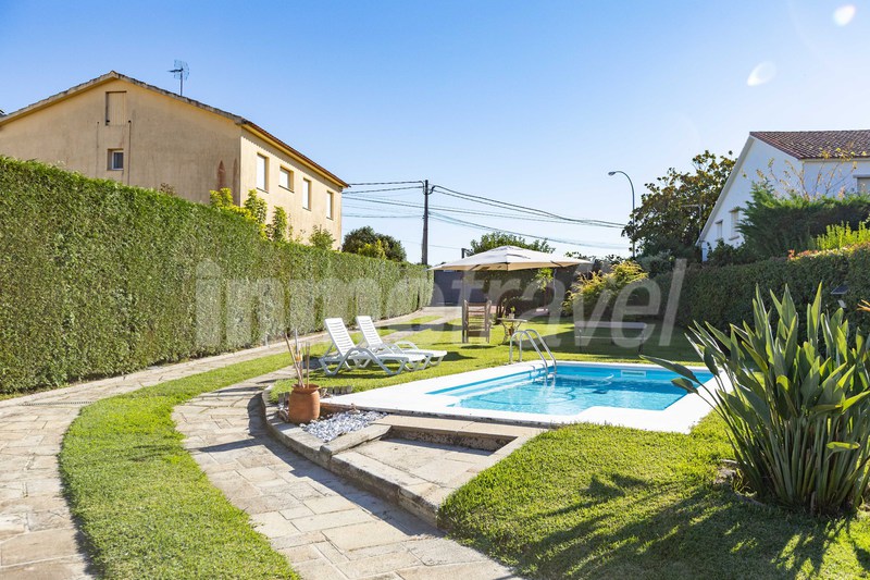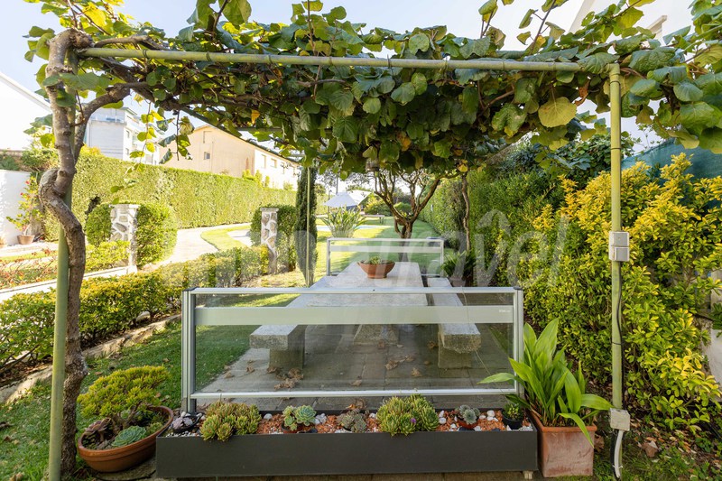 Desde la carretera general accedemos a la entrada de la propiedad a través de un portal automático. Ya en el inicio, bajo una parra de kiwis, podemos contrar una pérgola, ideal para el estacionamiento de los coches. Los bonitos jardines nos van acercando a la casa... flanqueda por otro cenador, en este caso con bancos y mesa de piedra, y una útil barbacoa. La parte exterior no termina ahí, ya que si buscamos la sombra de verano la encontramos fácilmente en la fachada posterior, orientada al norte, con otra zona de jardín amueblada con mobiliario de exterior. La iluminación exterior no solamente es eléctrica, ya que cuenta también con iluminación fotovoltaica.