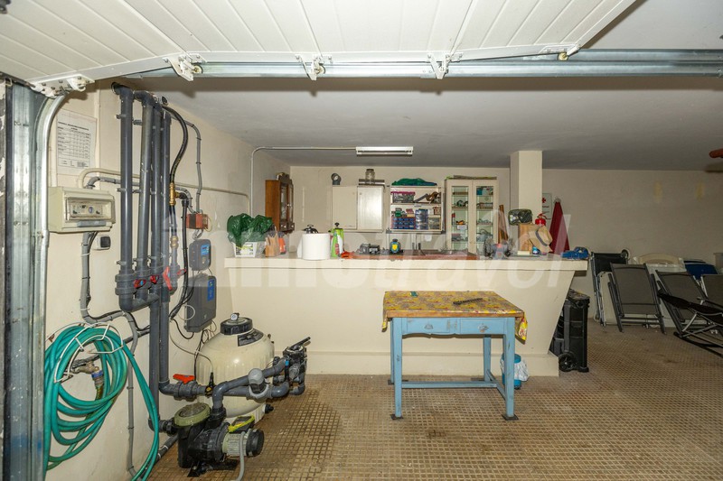 Lo que en su día fue simplemente un garaje, hoy es un espacio que se puede dedicar a múltiples usos: maquinaria de la piscina, barra tipo bar, almacés, trastero... incluso comedor o local para reuniones. Esta planta está comunicada interiormente con el resto de la vivienda.