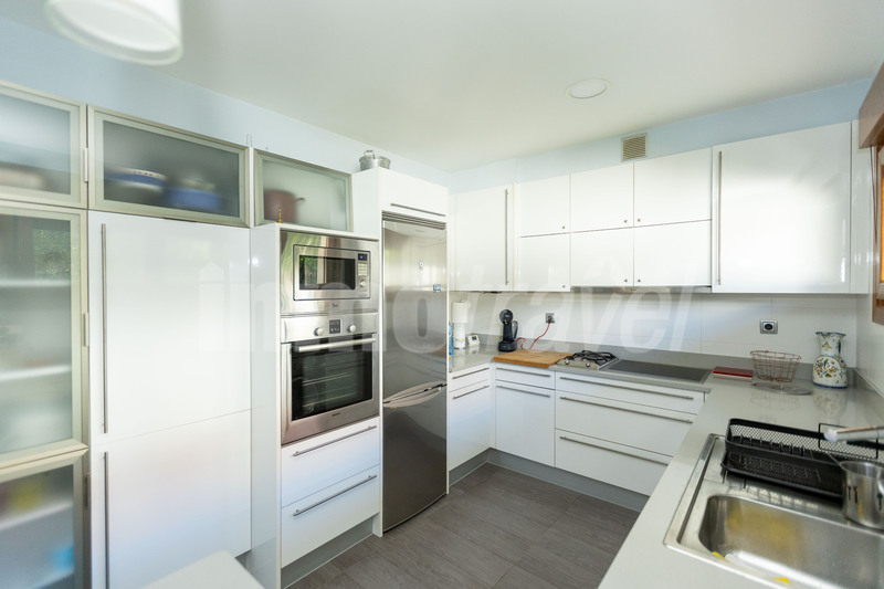 Cocina: VITRO, GAS, COMBI, HORNO, LAVAVAJILLAS, MICROONDAS, LAVADORA. MESA Y SILLAS.